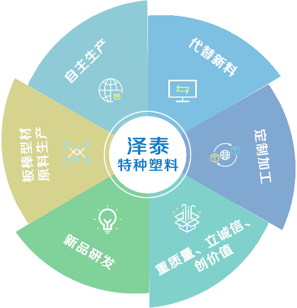 溫州澤泰特種塑料有限公司專業(yè)致力于特種工程塑料產(chǎn)品的擠出、注塑、模壓及機械加工,特別在PEEK(聚醚醚酮)、 PI(聚酰亞胺)行業(yè)有多年的生產(chǎn)加工經(jīng)驗。專業(yè)生產(chǎn)耐磨自潤滑塑料原料、耐磨耐高溫塑料原料、鐵氟龍增強耐磨塑料、碳纖維增強塑料、導電防靜電塑料、PI原料、PPS原料、peek原料、PEI原料、高溫尼龍原料、PEEK板材、PEEK棒材、PEI板材、PPSU棒材、PPS板材、PPS棒材、PPS加纖、PEI加纖、PEEK加纖、防靜電peek原料、防靜電pps原料、耐磨pi顆粒、pps加碳纖維、peek加碳纖維、高溫尼龍等,為不同行業(yè)提供特種工程塑料成品零配件及半成品型材的研發(fā)、設(shè)計、生產(chǎn)一體化解決方案。